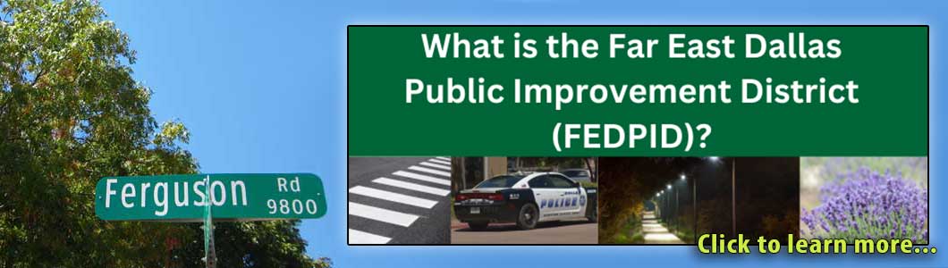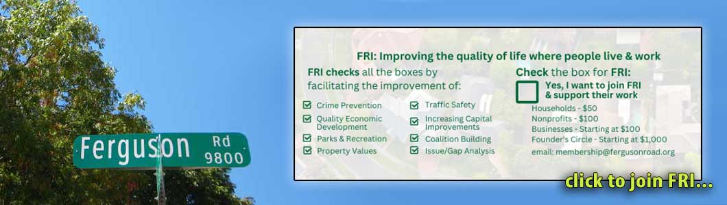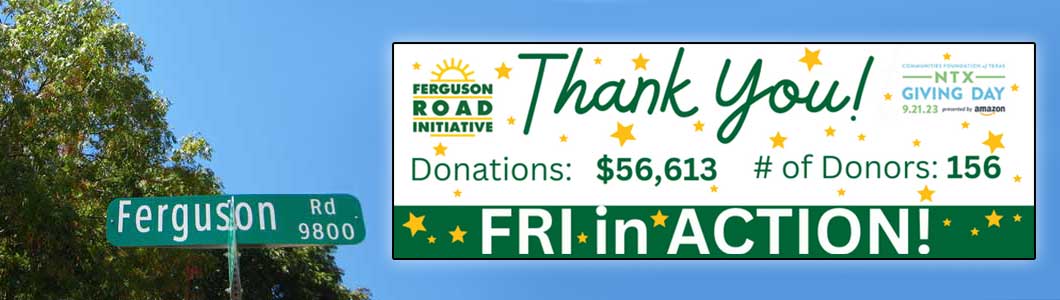 The mission of the Ferguson Road Initiative (FRI) is to engage and empower a community of advocates to advance a safe, beautiful, prosperous and proud community in Far East Dallas.