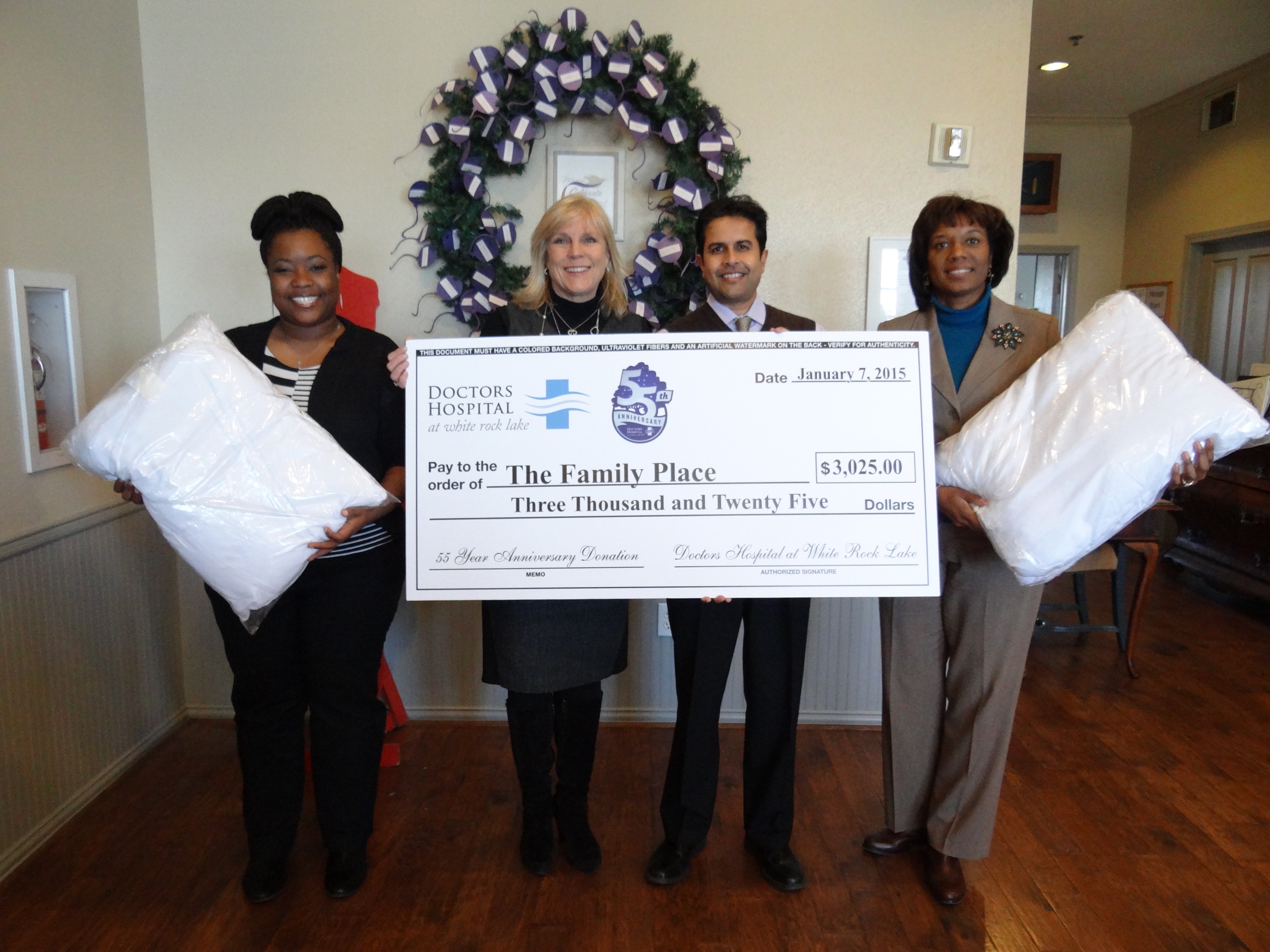 DALLAS, TX (January 13, 2015) ― In honor of Doctors Hospital at White Rock Lake’s 55 years of caring for the East Dallas community, the hospital selected The Family Place as the second recipient to receive funds for the purchase of pillows and robes for their...