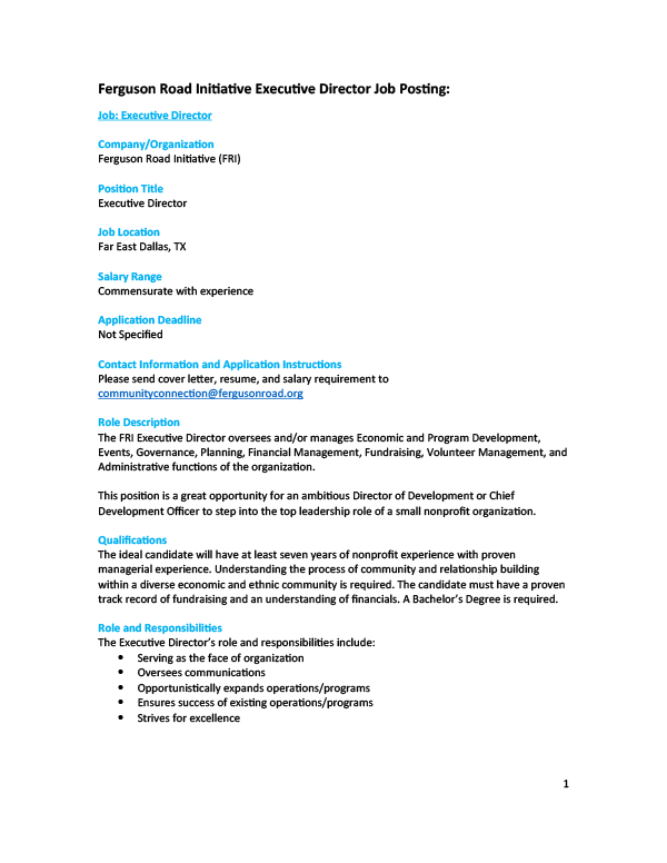 Employment Opportunities Executive Director Click on the image to the right for a PDF file describing this job opening.
