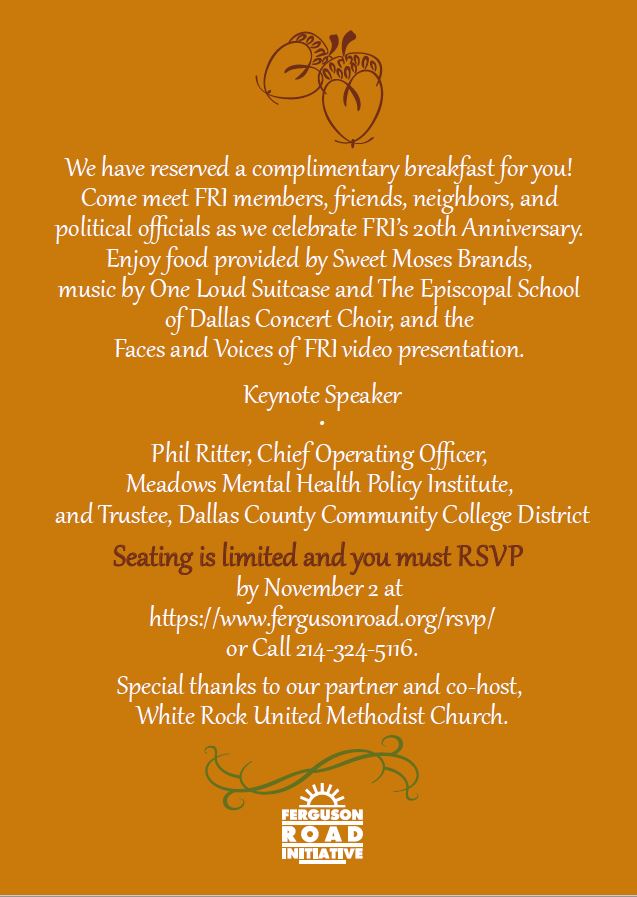 NOTE: This event is by invitation only to members; you must RSVP by Nov 2. If you are a member or a sponsor, and have not received your invitation, please call (214) 324-5116
