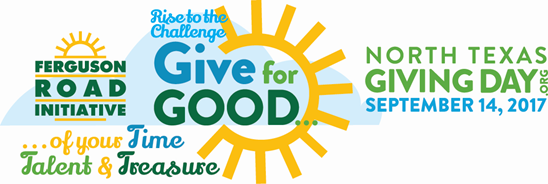 Give $50 or more to Ferguson Road Initiative via northtexasgivingday.org on September 14th, between 6 a.m. and midnight, and your donation will be multiplied from a pool of bonus funds and prizes! Help FRI make our goal of raising $15,000 to be matched by our good friends at McDonalds and others. That would be a total of $30,000 that we can use to support our good work through the end of this fiscal year.
