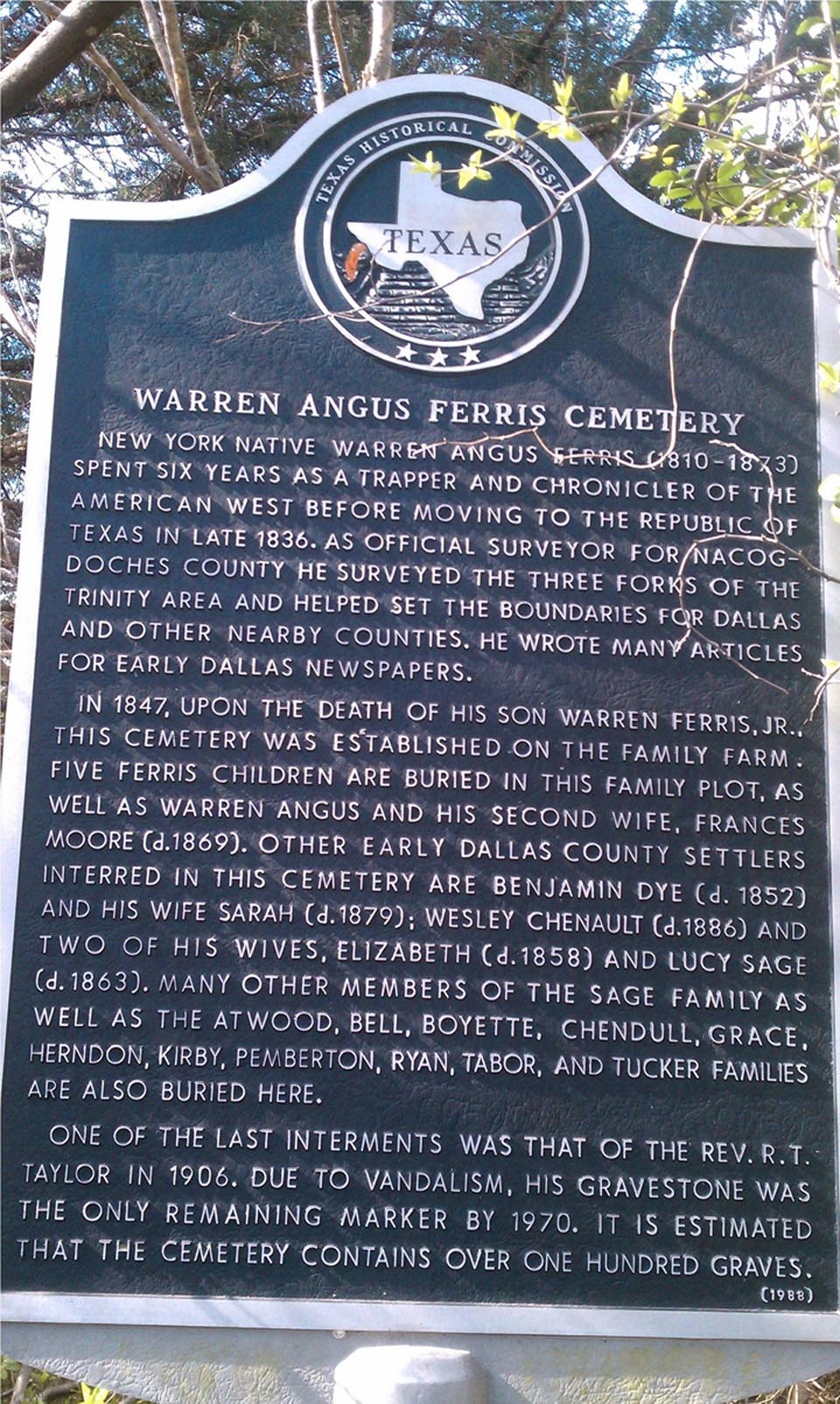 This Saturday, January 24 at 10:30 at Forest Hills’ Warren Angus Ferris Cemetery – Corner of St Frances and San Leandro there will be a dedication by the Texas Branch of the War of 1912 descendants of a newly installed headstone for Benjamin Dye, who’s grave (1852) is at the site.