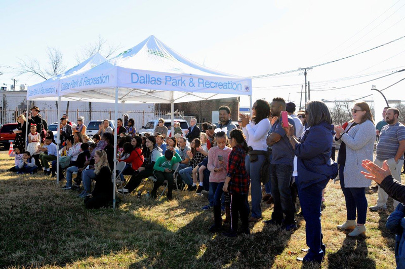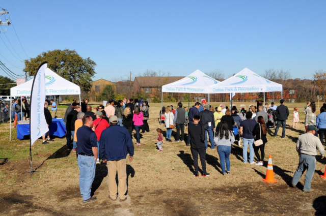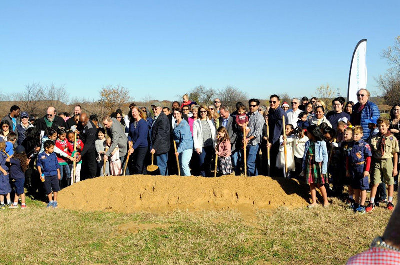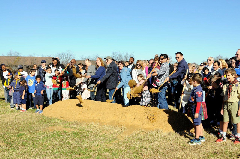 City officials and members of the community symbolically break ground on the new White Rock Hills Park - Participants included; Vikki Martin, Ferguson Road Initiative Executive Director (center), attendees on-hand comprised numerous City of Dallas staff and officials, including T.C. Broadnax, Dallas City Manager, Willis Winters, Director of Park & Recreation, Louise Elam, Asst. Director of Park & Recreation, Mark Clayton, City Councilman, Becky Rader, Park Board Representative