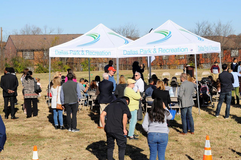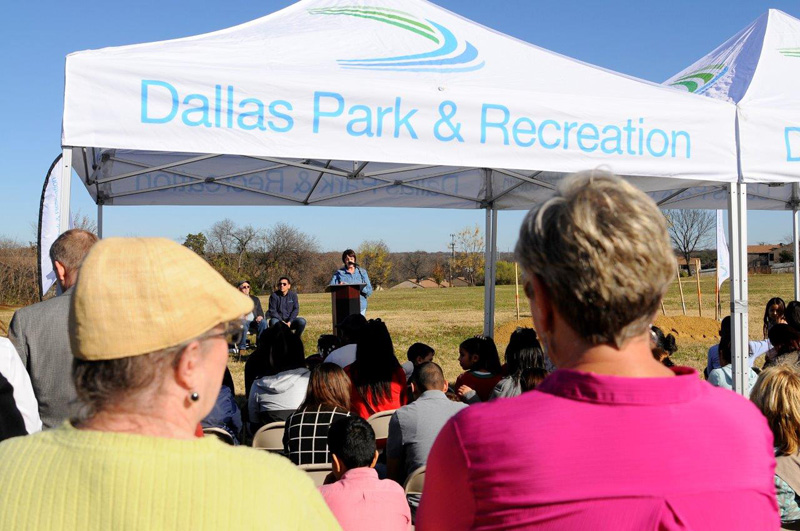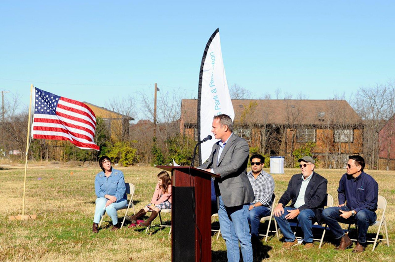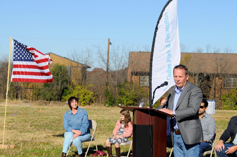 Dallas City Councilman Mark Clayton addresses the community at the groundbreaking for the White Rock Hills Park