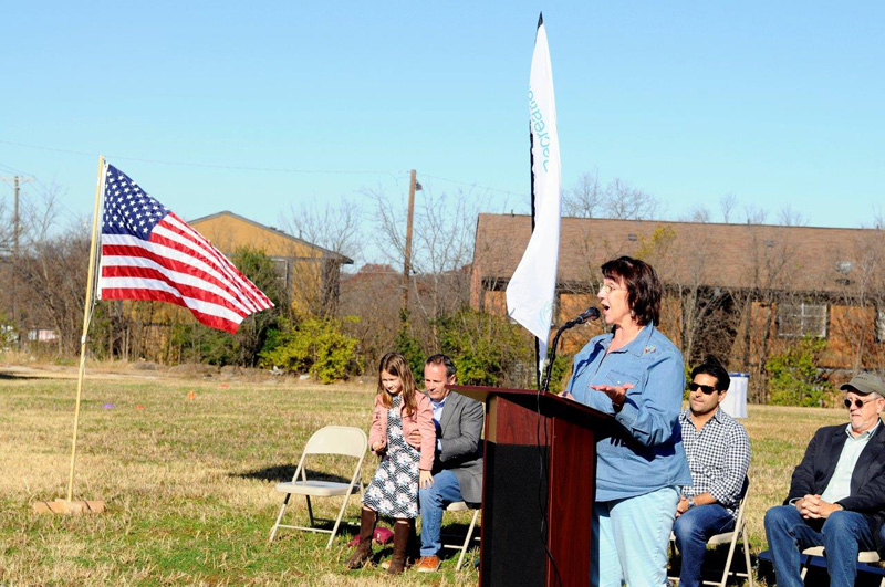 Ferguson Road Initiative Executive Director, Vikki Martin addresses the community at the groundbreaking of the White Rock Hills Park
